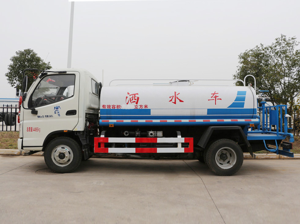 福田奧鈴5方灑水車水罐上裝配置:罐體容積可依據車輛公告制作灑水車,廠家標準罐體鋼板為4mm厚碳鋼Q235材質(用戶也可選用不銹鋼板材),罐內隔板具有防波作用,以減輕汽車行駛時罐體液體沖擊,罐體及整車外形尺寸按照公告。帶大功率專用灑水泵,可自吸自排,整車前沖、后灑、側噴、帶65消防接口,后平臺帶綠化灑水炮,灑水炮可全方位旋轉,可連續調成直沖狀、大雨、小雨、毛雨;前封頭帶水位計,后平臺主管路帶1付澆花接口,后爬梯。平臺后部帶小安全告知牌:“隨時停車,注意安全”,帶兩根水管及陰陽端。罐體顏色:上白下藍,銀灰/銀藍,罐體兩側噴“灑水車、綠化噴灑車”字樣,貼反光標示。灑水車可加裝前沖后灑氣動閥駕駛室控制、可加裝霧炮機組發電機組噴霧降塵裝置、車頭可加裝推雪雪鏟、雪滾裝置街道、公路除雪等。
